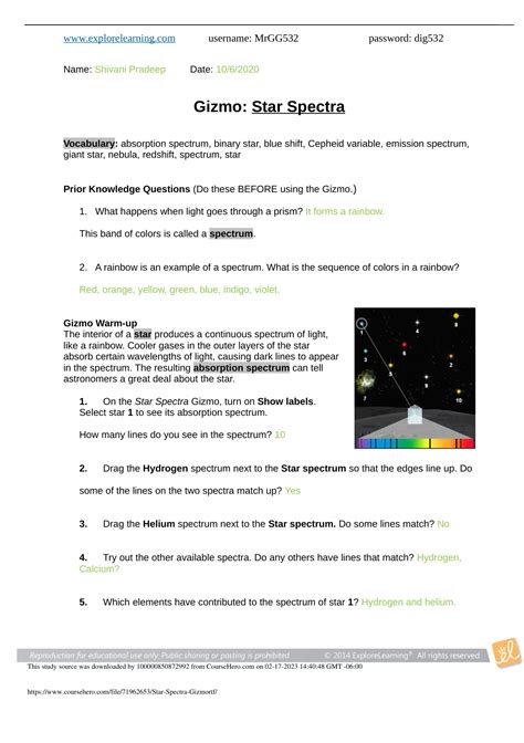 Download Star Spectra Gizmo Quiz Answers Doc